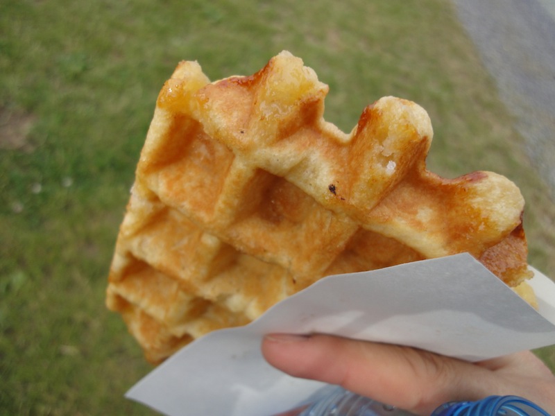 目の前で焼いてるワッフルをget!あつあつ!