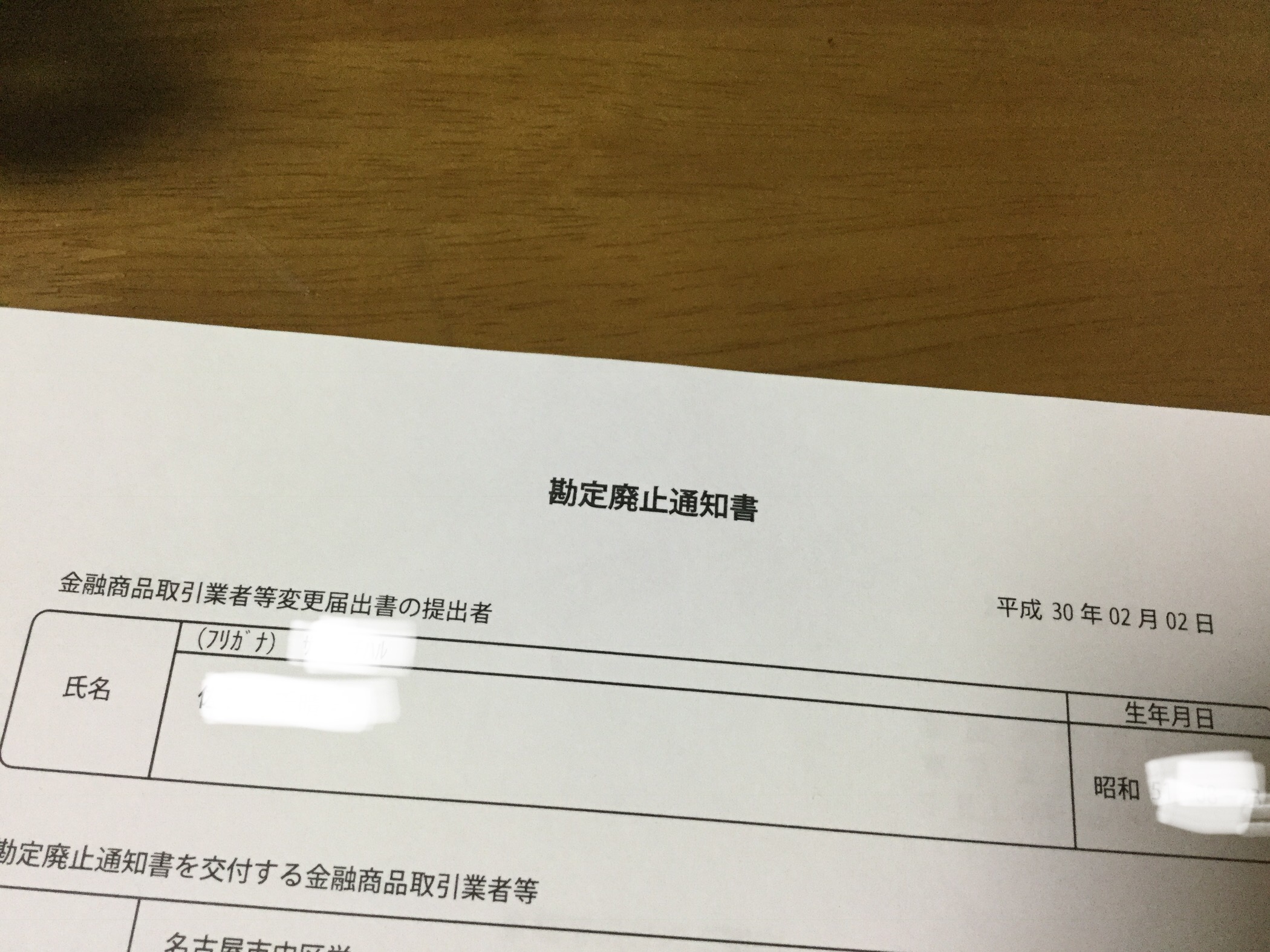 「勘定廃止通知書」が届きました。