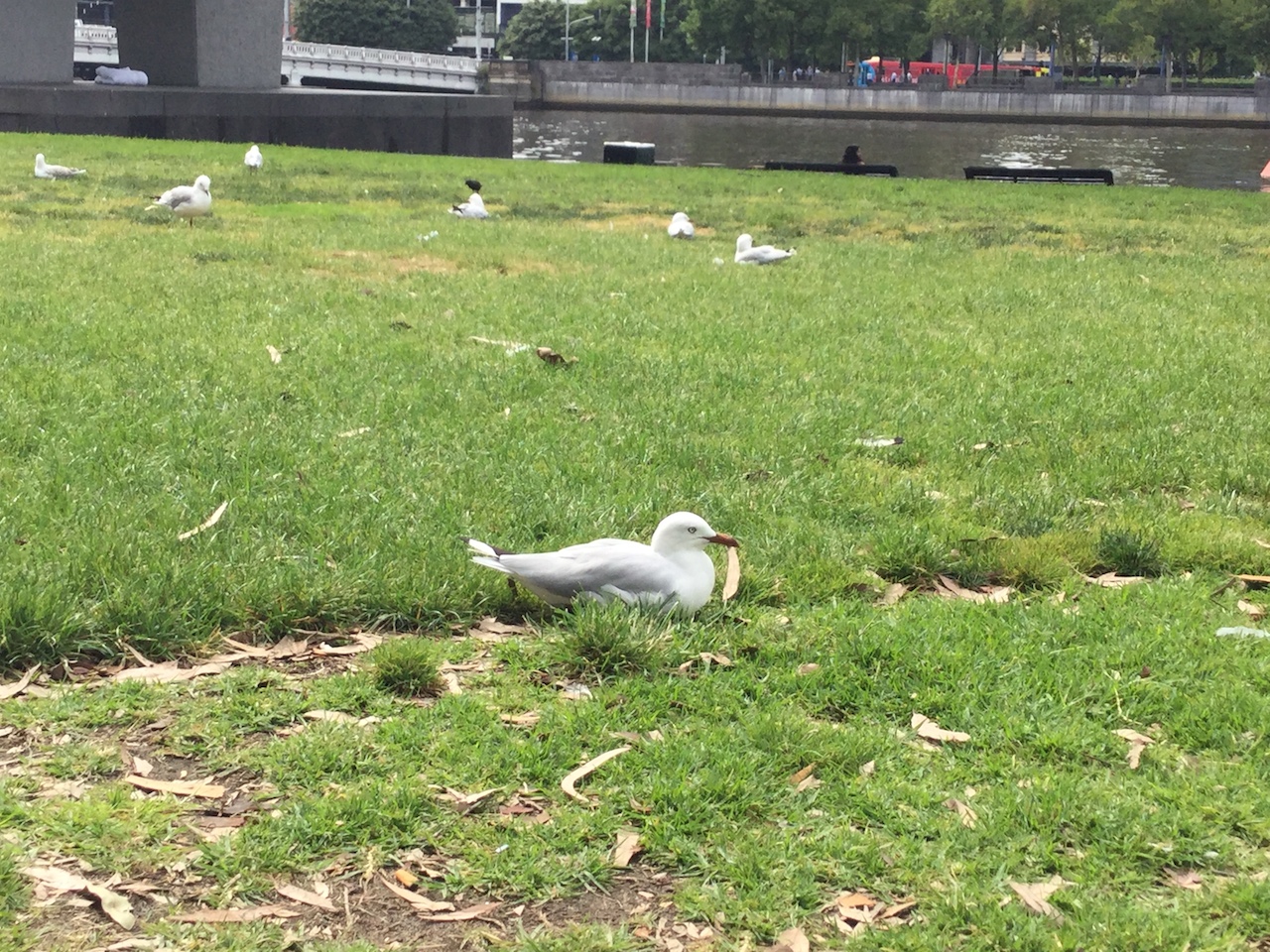 川沿いを歩いていると、ここでもやはりあちこちにカモメ。