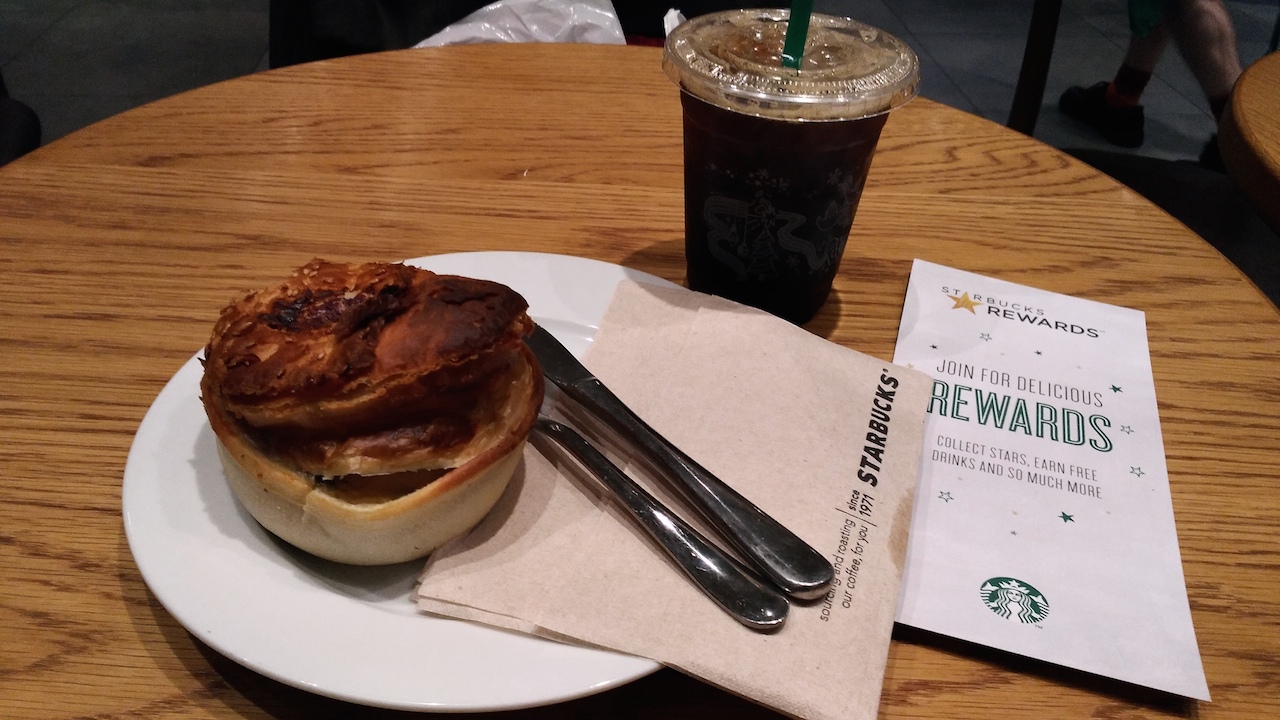 メニューは各国違うので旅先で入るのは楽しみなのですが、今回は目にとまったクリスマスシーズンぽいフードと、ここでもちゃんとあったのでIced Long Blackを。