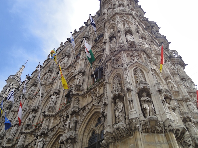 グランプラスにも劣らないくらい、豪華な美しい建物が並ぶ広場に出ました。ここでテンション上がってしまった。ここが市庁舎らしい。こんな市庁舎、日本にあったらとんでもないな!